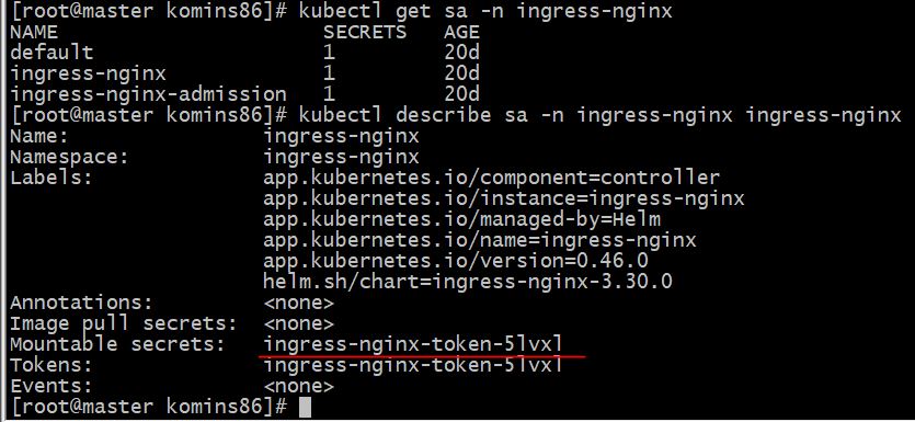 # 기존에 생성된 계정(ingress-nginx)의 토큰 값을 추출하여 연결