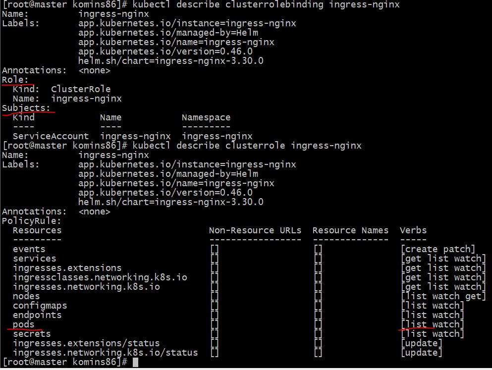# 서비스계정(serviceAccount)에서 ingress-nginx 리소스 확인