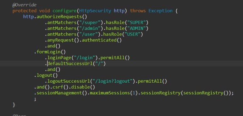 SessionRegistryImpl 객체를 SessionRegistry 빈에 주입 후 sessionManagement에 적용